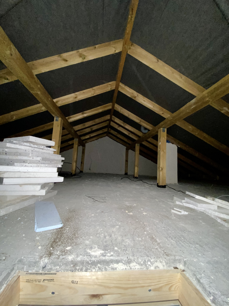 Strop docieplony wełną mineralną.